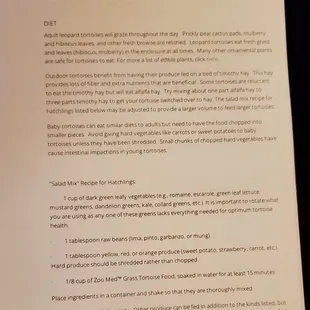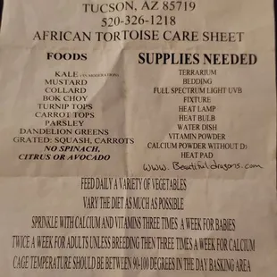 Tortoise Instructions at Tropical Kingdom versus The Vet. I understand that things happen and I called no one seemed to be concerned. I just believe that better care instructions would have been beneficial in sustaining the life of our little baby.