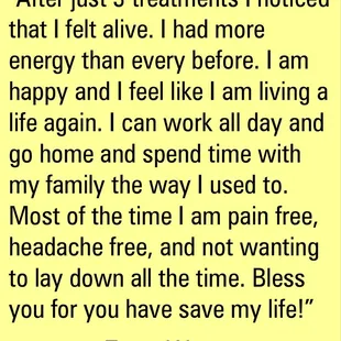 A little over a year ago, at my wits end with adrenal stress and hormone imbalance, Dr. Blessing and her staff have me back on track. Life changing is an understatement. I highly recommend scheduling an introductory appointment and learning about alternative therapies available through Tucson Biofeedback. I'm glad I did.