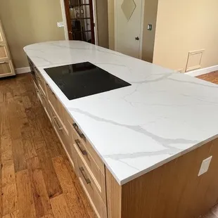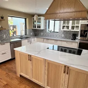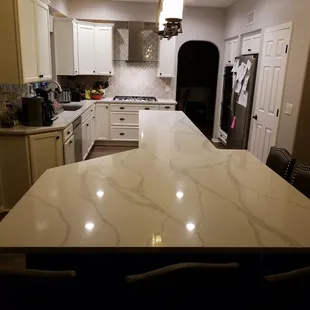 Exquisite experience in every way from consultation to installation. Our complex design of a massive stone island with waterfall edges on either side and a kitchen back splash that curved in a half moon shape over the range was masterfully accomplished and installed. We are elated with the results this company produced and appreciate how dilligently they worked with us to make it happen.