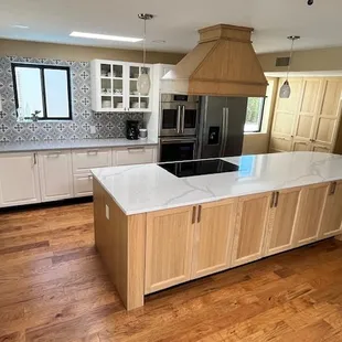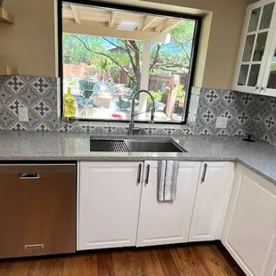 The week before Thanksgiving, we had to have our kitchen cabinets removed for some work in the wall behind them. Ugh! Two cabinets could not be reinstalled and some of the others were showing signs of wear after 20 years.We contacted Tucson Cabinets and Stoneworks in early December and worked with one of their team members to plan our remodel. We turned our island (gaining additional cabinet space), widened the space between the cabinets so two people can work in the space comfortably, and added a beverage center.To expedite, we ordered Mid-Content cabinets and a Cambria quartz countertop. Working with Barclay, Audra, and their amazing installers was a pleasure. When we ordered, we were given an installation date, and they were able to move us up a week. Our cabinets were delivered and unpacked the day before install with all packaging removed from our home. The installer arrived on time, and single-handedly installed all the cabinets in a day! He came back the next day to complete trim work and to note warranty replacements for a few cabinet doors that did not meet their standards. The next day, the countertop installer came out to measure for the slabs using lasers. One week later, we're only missing our backsplash (different contractor). I'll post a photo once that's in!We also were very happy that everyone we worked with in showroom and in our home adhered to COVID-19 precautions. All were respectful of us and our space.From start to finish, we're pleased with Tucson Cabinet and Stoneworks. When we get ready to remodel our bathroom, we'll be back! My partner and I highly recommend them.