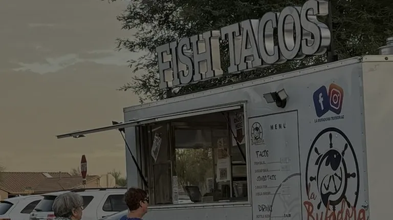 For an opportunity to see two burly men serve up **danger danger Kim Jong Un spicy** Korean tacos in a shaky, bright red food truck emblazoned with the words, BAM BAM MEXICAN ASIAN FUSION, complete with a picture of a little Buddha in a sombrero, RUN - don't walk - to the next Tucson Food Truck Roundup. Then, RUN again in the opposite direction to douse your tongue in a vat of Mustache Mike's Italian Ice. The Tuscon Food Truck Roundup - a collection of independent food trucks that vary from even to event - is a great way for people to sample tasty, down-home, international grub served out of moving vehicles with fluorescent lights. On a Tuesday early evening, the Roundup was as the Sonaran Science Academy - an isolated bad location, in the middle of a residential neighborhood. Turnout was small, maybe only a handful of food trucks - but the stand out was Bam Bam. For $7.50, you get 3 soft taco "samplers" - one with chicken, another with bulgogi beef and one with spicy pork. While the beef was pretty unremarkable and too sweet, and the chicken tasty, the spicy pork was out of this world spicy, causing most people to run to the nearest fire hydrant to suck on its nozzle. Each taco was overloaded with FRESH veggies, better than that wilted stuff you've got at home in the crisper. Other participants that day included Vina's Baguettes, Jackie's Food Court, BBQ Rush and DC Jumble - Latin/Carribean Fusion - the only other interesting place I might have tried, had my tongue not been in a cast and I was eating dirt to soothe the burning sensation in my mouth. Most of the trucks do private catering and the Foodtruck Roundup gets out many times per week with different participants. Definitely worth a try and a great way to support your upcoming local businesses!