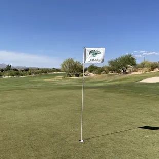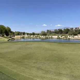 15th green with the extended flag.