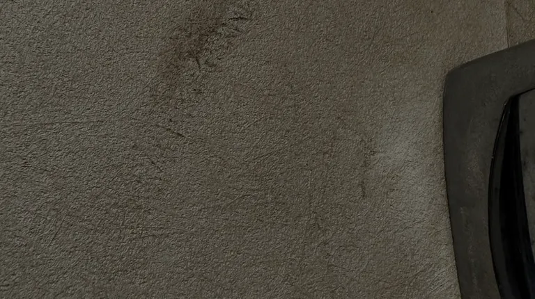 Wall behind shower curtain