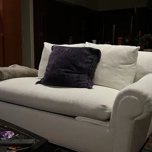 Not round as it was and didn't match either side or other two sofas. And dirt spots.