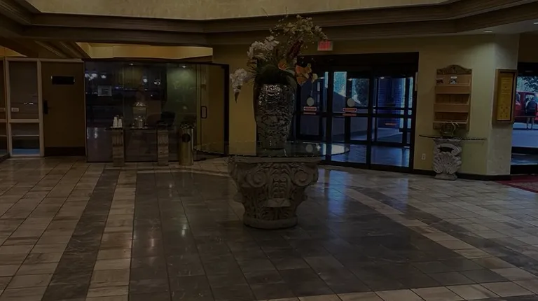 This is "The Hotel That Just Gave Up"I just spent two nights here. If it was not hosting the most amazing people at an event worth crossing the entire country to attend, I would have bounced from this mess after my first walk-through. I was traveling alone but if Lady Matilda had been with me, we would not have even made it to the room. In my other reviews, I try to be mindful of hotel staff who are working hard despite bad conditions. The staff, except the front desk team, was friendly and worked hard. I had to call the hotel to get the special rate for a "Deluxe Suite" and the rate was fantastic. I noted that the hotel website makes a distinction between "single rooms" and "suites" and I specifically asked for the "suite" when I called to reserve my room. I didn't leave any payment information. I was given a number over the phone that did not come up when I tried to confirm my reservation online. A few days before my arrival, I called and a bored-sounding person informed me that I had a single room with double beds. She was unable to do anything about it because she said that my reservation was handled by the sales team and they were not available.I brokered a resolution through the event and was told that the correction had been made. However, when I arrived, another bored and weary-looking desk clerk informed me that I had a single room with a queen bed. Again, she could do nothing about it because the sales team was gone and no "suites" were available. Given the price, I didn't have the motivation to press the issue. It seems that the sales team refers to all rooms as "suites" and that there are different "suites" that are bigger and more elaborate. The desk clerk said that I could take the room or cancel the reservation, whatever.The room was bigger than I needed, but the use of descriptions was needlessly deceptive and confusing. It's a multi-sectioned "single room" that other hotels could call a suite, but the website's photos made a distinction. Note that I've just gotten out of registration at this point in the narrative. I will summarize the bigger issues.1. Damaged furniture. Broken drawers; wobbling tables; the room door was warped and wedged into the frame; few and non-functional outlets; burnt-out lightbulbs; holes in the tabletops; stains on the carpet; poorly-covered holes in the wall; a sink that sprays everywhere; and a shower with pressure and temperature that shifted based on the use in other rooms. This extended to the larger hotel itself. Long, dark streaks in the hallway carpets from the elevators across the hallway; most of the urinals were broken in the event men's room, and two of the stalls were not functioning properly; and meeting rooms that could not stay unlocked and had to be held open with empty soda cans. The refrigerator worked so the lunch that had been left behind in it was cold. The top of the fridge was sticky. The window sill was dusty, and the windows themselves had not been cleaned in a long time as evidenced by finger streaks across the glass clearing a thick layer of sticky dust. Crumbs on the floor. Dog kibble in the corner. And this is the room I had allegedly been "upgraded" to.2. Dated, worn fixtures. What might have looked great 30 or 40 years ago is faded into ugly pastel peach and tan. The working fountain at the center of it all was pretty, but blocked by a ring of ugly, graying stone barricade walls and four faded Pepto pink elevator towers. The open-air concept must have looked amazing once with a big open cream tile floor open to the three floors above and a bar toward one side, but it felt like it had been empty for a long time with an abandoned bar and a big open space occupied by heavy iron and glass patio furniture. Because this was a convention, I visited different rooms and I got the impression that the hotel just bought salvaged furniture sets from other hotels and threw them into the rooms that were too badly damaged to be liveable. My room was a mix of styles that leaned toward neo-Victorian particle board with white laminate. My colleague had a room that appeared be inspired by or held over from set of The Brady Bunch. Just as broken3. The Restaurant is food truck fare. I paid almost $20 for a drink and chicken strips. I get the inflated price because I'm trapped at a restaurant, but the variety of the menu was limited and uninspiring with nothing to tempt me into paying more for a menu item implying some culinary creativity. I could not bill my meal to my room. The breakfast that comes with the room was standard and not good. If you're just after a quick coffee or juice-like beverage, it's fine. The eggs were...off. The potatoes tasted like the previous day's trays had been reheated as they were stale and gummy. If you fry up bacon to be crispy and then let it sit in a steamer, it becomes jerky. That said, the service was solid and I never had an empty drink glass.