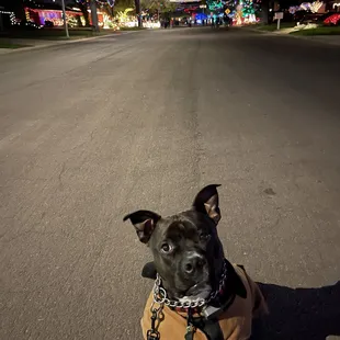 My first time to this event was ten years ago. I went back again tonight with my dog Gretel.I thought 730pm would be a good time to stop by, but traffic on Country Club road was backed up. Every parking lot had become a cash-only $10 lot. I didnt have cash on me.I ended up parking on the west side of Winterhaven, in a quiet neighborhood off Linde street and Tucson Avenue. Weather tonight was unseasonbly mild, which may explain the heavy crowd that first hour. I used my tracking app to prevent from getting lost, following the crowd as I meandered through Candy Cane Lane.I especially liked the tall pines getting lighted up, the local musicians and the more creative and/or spiritual displays. There were a few food and drink vendors at the west entrance.There were plenty of dogs and happy children.It took me 90 minutes to walk 3.4 miles.