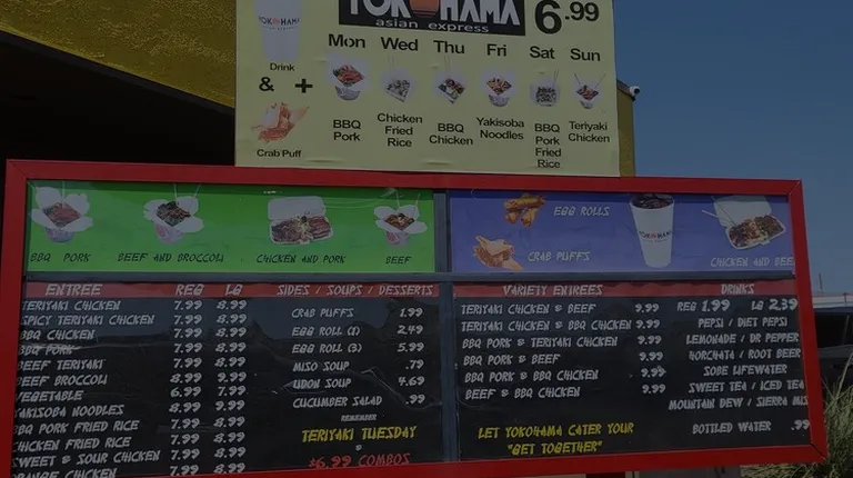 Yokohama Rice Bowl is a great fast food restaurant!! They have daily specials that come with a drink and won tons. Tuesday is Teriyaki Tuesday!! You can get a regular size teriyaki bowl and a drink for only $5.99!! The menu has many different items to choose from. The staff is very friendly and the food comes out hot, fresh, and quick. Also, they have a drive thru. I recommend Yokohama for anyone with a quick fix craving.