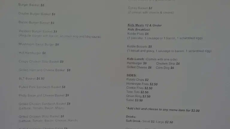 Classic small town diner. Friendly staff. Good service. Good food. Reasonable prices. I've had steak fingers one time. They were great. Not the typical frozen from a box off a truck kind. The second time I had chicken chunks with jalapeños. It was hand battered thick chunks of chicken. The cook even came out and asked whether preference was light or dark meat. I also asked if he could throw in some onions with the jalapeños and he gladly did.