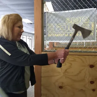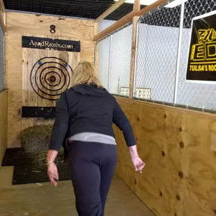 Ok.... so this is legitimately one of the most coooooolest things to do and probably to do semi often. Oh who's kidding... blow off some steam or some anger! So for starters you can play for points, strong arm or weak arm, black jack, horse, tons of little game variations and soooo much fun. This is a legit sport and fun!We were here for a team party and the whole group had a blast! You can easily kill 1.5 hours playing with a small group but don't be afraid to double your time!You can easily throw a party here and soon they will have beer and wine available to purchase and make your event that much more enjoyable!Did I mention it will wear you out? Well not too bad but we did speed olympics and wow... you'd be amazed at how many times you can throw an axe in one minute...