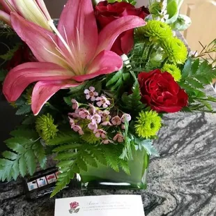 I found this florist through Yelp. I called from California to order a special get well bouquet for my sister. I flew in to take care of her and stopped by the florist to pick up the arrangement and was absolutely delighted with the beautiful basket of flowers! They were ready when I arrived. And the lovely lady who made the arrangement came out to greet me when I came in. My sister loved the flowers and I took this picture 4 days after I picked them up and you can see that nothing is wilted. Every variety looks perfectly fresh. She did such a beautiful job and happily accommodated me when I asked if she could add in a few extra jumbo roses. I love that she even made the back of the bouquet look good. It's hard to order flowers from out of state. And flowers aren't cheap. But These were absolutely beautiful and I highly recommend them!!