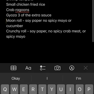 The sushi was good, the people were friendly. Small place but I was happy with my order.