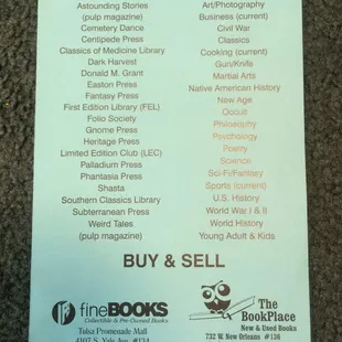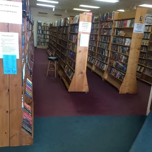 Small book store with very nice man running it. They do have things in sections, thriller, mystery, children's etc. you might find something you want!