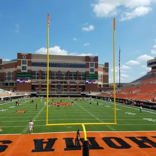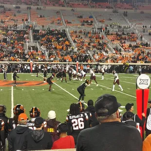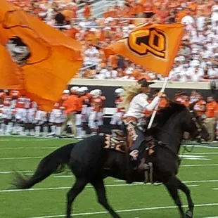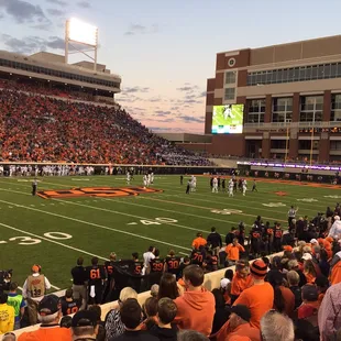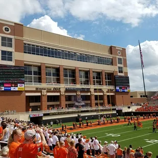 Beautiful stadium. Although I was there for the opposing team (sorry) I will say that as I hid furtively in my clothes of red & black surrounded by a sea of orange, the people of Stillwater could not be nicer. From giving us a tour of their campus, guiding us out of our (tight) parking spot, this Arkansas girl who was afraid of being lynched, I was impressed by the Cowboys' fans' loyalty and undying enthusiasm for their beloved ranked team. Front row sideline seats in the stadium are literally close enough to talk to and touch the players. I even had, what my friends now refer to as "the moment" I yelled to the head coach and he laughed, smiled & pointed at me with 5 minutes left in the game. Pleased with his response, I sat grateful for my assertion and acerbic vocal projection (I'm loud, okay). I was a little disturbed by the huge Gary Busey photo on the big screen and had to google why OSU fans are called "Pokes", as well as the little boy and his mother who yelled the entire time in my ear to what I thought would be my moribund, I had a great time in T. Boone Pickens Stadium. P. S. Tell Pistol Pete that he should exercise some cogency in his use of firing the deafening gun shots.
