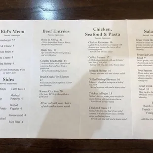 We dine at Brush Creek at least twice a month, love this place. The food is great and the service is always friendly. The food is priced right and the steaks are cooked right to order. I hate it when you go to a steak house and order med. rare and it comes med. well or well done. I have never had that happen at Brush Creek. I strongly suggest trying this place out.