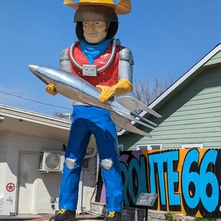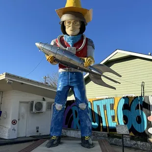 Great roadside attraction in an odd location, at least as far as the neighborhood goes. But, it is on old Route 66 so you can't get much more classic than that. If you are going to stop in, don't just stop and take a picture. Get your butt inside the store and start a conversation with the woman behind the counter. You are sure to get a few good stories and you will, not may, learn something new about Buck Atom and the process of bringing him to "life". Great Instagram stop but better slice of Americana stop. Stop on by, take a few selfies and spend sometime relaxing and learning inside the store. You might even find a souvenir that you just can't live without. Enjoy!