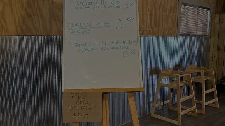 This was a great local find. Buster was the one taking care of us. Took our orders, made our orders, and kept us entertained the whole time. Very down to earth. The food was great. Standard bbq offerings with a few unique items. The pulled pork and had a good smoked flavor and was moist. Pictured is the cheesy pig sandwich. Pulled pork, mac and cheese, on buttered and grilled Texas. Lots of locals eating here. Lively atmosphere.