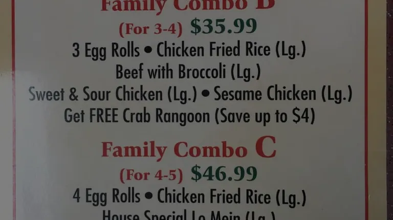 It sucks, don't waste your time, the chicken and broccoli tasted industrial, I don't know how else to describe it, but I tried to return it, and all they would do is make another one, I didn't want another one, it was bad the first time, and so was the crab Rangoon, and iv had there food before, not bad, but today, it was and they didn't want to fix it, so I won't be back... No