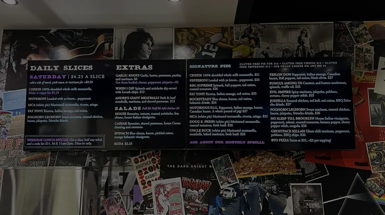 Super fan on their pizza slices! I swung by to get lunch to go. A few slices because I will nosh in it for a day or two. Their Caesar salad was delicious too with lots of shaved parm. Their staff is super friendly and helpful too. The inside is super fun too.