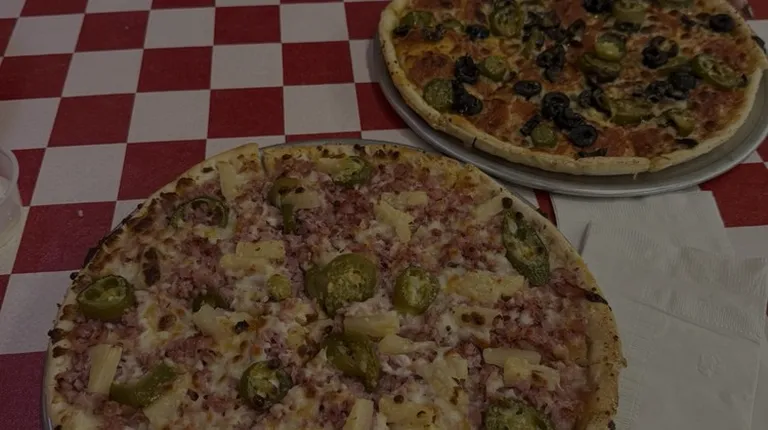 Guido's has been one of the most consistent restaurants throughout my life. I have so many fond memories of eating here with my family. The service is never bad, and the inside is very open with a beautiful mural. As for the pizza, I would say it stacks up against the best locally. I always get a variant of Canadian bacon because I like how the shred it rather then the slices. What you're looking at is Canadian bacon, pineapple, and jalapeños -- delicious! The other pizza is pepperoni, black olives, and jalapeños -- also delicious. Highly recommend!