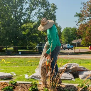 a woman tending to a garden