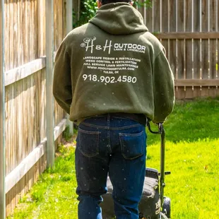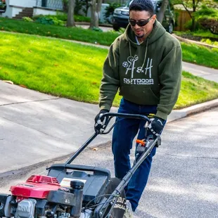 a man operating a lawn mower
