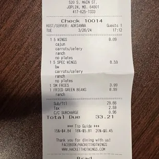 I was in Joplin for work. It was told about Hackett hot wings. I thought I'd give them a try. I was really disappointed. They did not live up to what I was told. I placed to go order for 10 wings... 5 Cajun Dry Rub and 5 Brandon Williams... plus fried green beans, and a small french fry. The flavor of the wings was okay but there was absolutely very little meat to them. I've had better wings from Chili's. The green beans were pretty good and french fries were solid, but nothing to rave about. The atmosphere is definitely a bar setting and one out of about eight employees was helpful. My to go order took about 20 minutes and I had to go back and ask for someone to check on it, which they then brought it out. Overall it was not a good experience, and I would not return based on this visit.