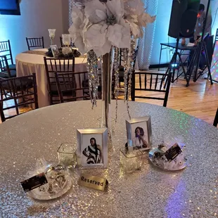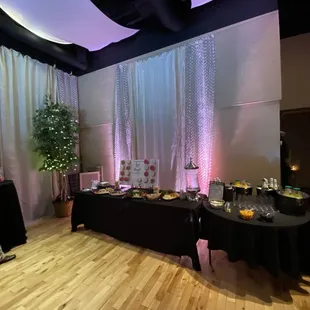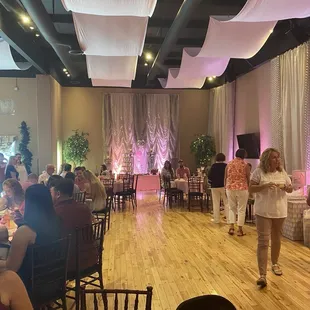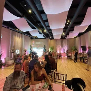 Amazing place for any small to medium event. They really can glam the place up and make it fit any color themed event. There is enough space for food, a dj booth, A dance floor, tables and desert area. Only thing is the overflow parking is in the grass and at night its really dark outside.
