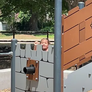 Fun kids park with lots of interesting areas to climb and play On warm days the water area is onSafe off riverside parking and fenceBest for younger that 8 Clean restrooms Each area is nicely separated The area is well kept and groomed landscape Picnic areaFun time with my grandkids