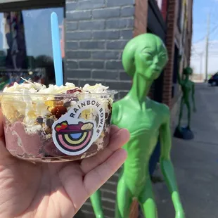 This spot has a VIBE!! I like how its so colorful inside! A spot to buy tie dye clothes, cool apparel and accessories otherwise, and you can make your own custom tie dye shirts. Where I am not into tie dye myself I have found a couple little bracelets that I like. My wife and daughter though have found several things they like and have made appropriate purchases. Me being more of a foodie than being wowed by clothes and the like, I'm here for the bowls! I have recently learned I'm really in acai and pitaya! Don't ask me what either of them actually are, IDK, I just know I like the flavors I get when I order a bowl with either of those things! I'm a big fan of the peanut butter and the nutella bowls. I feel like I'm getting a yummy treat but one that is also healthy(ish). I am not a nutritionist so I won't just come out and say "they're good for you"......... but I feel like it's a solid dessert option that won't push me towards a diabetic coma.Overall excellent addition to the Broken Arrow Rose District. I'm glad they opened a satellite location here!