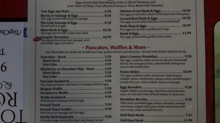 Jake's is an older cafe with 50's style. The staff was so sweet. You get a lot of food for what you order. So far have been twice for breakfast and each time have loved the food. Their waffle is my absolute favorite!