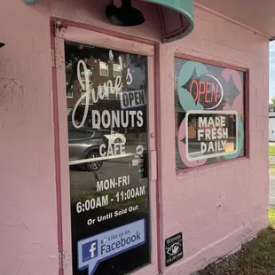 This is the same building where Daylight Donuts used to be. It's super easy to recognize since it's an adorable and bright pink building on 11th & Detroit. This is a family owned business and it opened in June 2023. It is named after their dog, an adorable huskey named June. There's a framed photo with the story by the register. The drive-thru at makes its location unique and convenient, especially downtown. One of my favorite things to get are their cinna-bites, which are like cinnamon roll donut holes. They also have Community Coffee available as well as breakfast croissant sandwiches and sausage rolls, all freshly made. The service is super prompt and friendly. Highly recommend supporting this great local owned business.