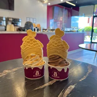 Cons: Do my favorite soft serve in town is Mr Softee. They're a food truck, so they're not operating most of fall and winter. Plus, McDonald's ice cream machine is down ever time I go there. I read online that people love the soft serve here. It was ok. Not bad. But I still prefer Mr Softee and McDonald's. Price! $9? That's pricey. Pros: now the good. The customer service Was phenomenal. The place was so crowded and all these people were there who needed help ordering. The cashier took the time to explain how things work. I didn't need that. I ordered from the kiosk. Pick up was at the other end of the counter. That kid was nice too. Surprisingly, My husband loved it? I got the plain custard taiyaki with vanilla soft serve add sprinkles.