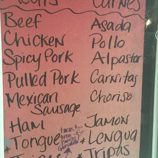 Carnitas, Asada, Chorizo, Pastor