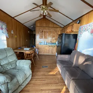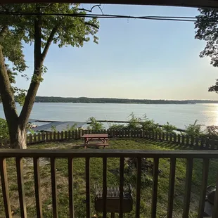 Wonderful staff. If you are trying to get a cabin/nature experience, this is the place to go! Just know that you are paying for the view and NOT the quality of the cabin. This is an older establishment and the stove, oven, microwave, and coffee pot show that. Bring your own cleaning supplies and pots/pans. What they have in the cabin has been used too many times. Bring your own sheets/pillows as well. The ones provided are stained and not washed well. Although they have military memorabilia everywhere, they do not offer military discounts. They also prejudice towards dog breeds. Don't put your feet near the bathrooms bottom cabinets as there are tacks/nails poking out of the floor. The beds are just springs at this point and my guess is the furniture has never been cleaned. Good luck going down the stairs to the dock. I wouldn't trust those stairs with my life.