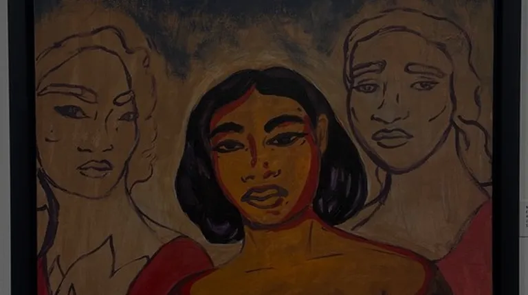 Gallery attendees receiving artist's talk about Gay Pasley's work.
