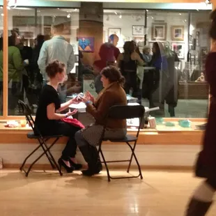 A show case for young new artists, what a fun night at a beautiful venue! The two ticket tables, one for sponsor tickets and the other for regular purchasing clientele were exactly as advertised, very organized, fast and efficient. There was a very good crowd enjoying the over 75 works of art from modern sculptures to traditional oil paintings, to beautiful wood bum pictures with water color added. There were some complaining that they were through the entire venue of art in 30 minutes, I would only imagine them completing a walk around that fast only if they looked at each piece of art like the Grizwolds in NATIONAL LAMPOON VACATION looked at the Grand Canyon. My favorite of the night depicted a huge oil painting of wild boar feasting on one of their own. The cocktail bars were nice with several different beer brands and mixed drinks and wine available. The mostly female new age grunge style band rocked and really entertained the crowd.