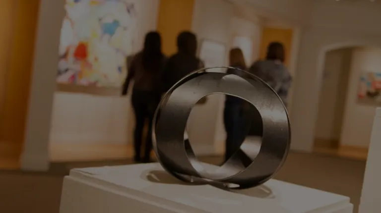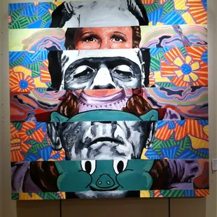 An amazing steel piece resembling an electric current, titled Epiphany, by Leslie Martin with a fun Acrylic by Eliseo Casiano!