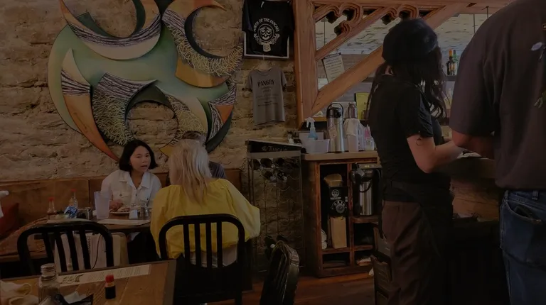 This is our go to spot for breakfast when in Eureka. Friendly staff, great coffee, awesome specialty drinks and wonder muffins, pancakes and waffles.My hubby and I love the Mud Street breakfast though. 2 eggs (any style), fresh fried homestyle potatoes and your choice of bacon or sausage (locally sourced) and toast. This will fill you up without breaking the bank!Mud Street Cafe does have a bigger location just a few doors down from this one but it gets really busy very fast. Often you can walk right in at this location and either sit at the bar or get seated with little to no wait when there is a 30 minute wait at the main local....people forget this extension is available, but we generally go here because everything is on the menu thar is at the main location too.Oh, and they serve breakfast all day long!!