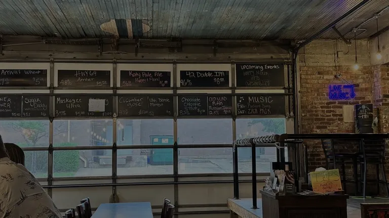 The place is small but nice. There is the menu in the garage door. The locals come here and seems to be a good spot to meet up. There are darts on the wall and seems to have a great atmosphere. Bartender stated this is the only brewery in Muskogee. Russian Ivan stout is the bomb!!Double IPA has a great hoppy taste.