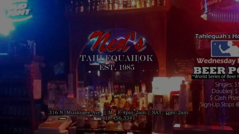 Ned's is the local hangout. It's the place where you can walk in alone & guarantee you'll run into some you know there. It recently changed it's smoking policy & is now a no smoking facility. There is a gated patio out back for the smokers. They have the best priced drinks in town by far. Although they don't serve food, they're in the heart of the downtown area close to pizza, burgers, & Greek food. Pool tables, ping pong, beer pong tournaments, shuffle board and an iTouch jute box keeps you entertained all night long. Plenty of staff on hand & they're all friendly. The bar is locally ran by the 2 son's of the previous owner, both of whom are musicians so they too are well known in the community. It's a great place no matter what age to just sit back, have a drink & visit with friends. Spacious & lots of seating is just another added bonus. Ned's ... a main staple of Tahlequah, OK.