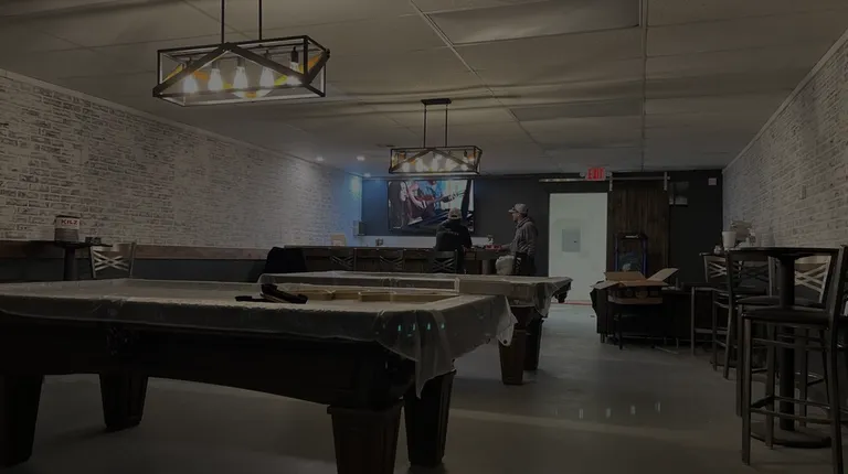 a pool table in the middle of the room