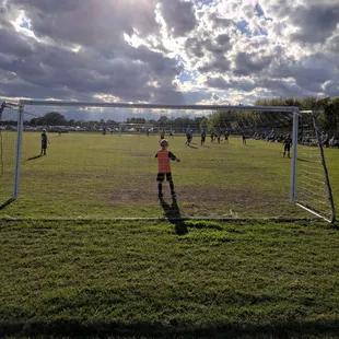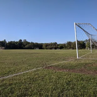 The game fields are well attended to, mostly level and the goals are maintained. The concessions are open on the weekends. I appreciate how affordable they are. They have a restroom open for game days and several porta potties scattered around the property. Usually they have no soap. We had one game this season where no umpire was scheduled but it was an understandable mistake. I think they need to improve the practice fields. The grass is sparse and they have lots of holes. I'm constantly worried one of my kids is going to twist or break an ankle. I'd love to see some small improvements for safer play on the practice fields. Also, it wouldn't hurt to widen the exit or ask the city to put in a light. Leaving can sometimes be a challenge. Over all my kids love playing soccer here!
