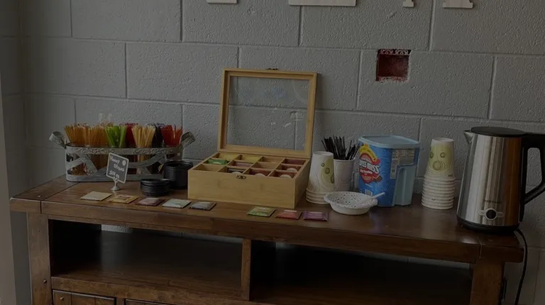 a brick wall with coffee signs