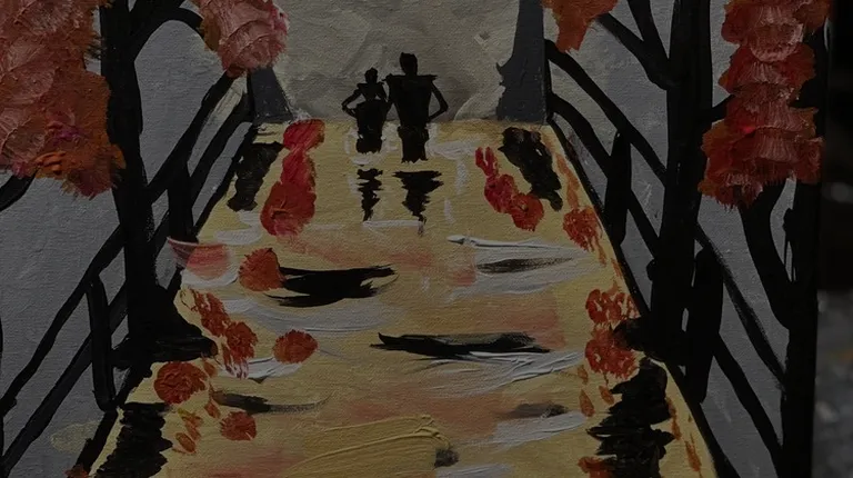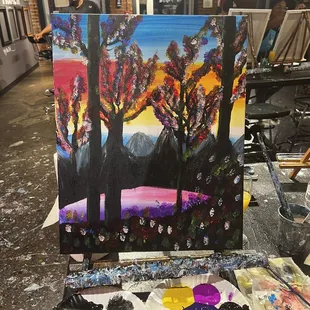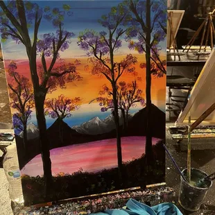 On the left is the Galaxy Lake we painted as a class, and the right is the gorgeous painting the staff gifted to me and my fiance!