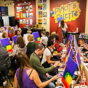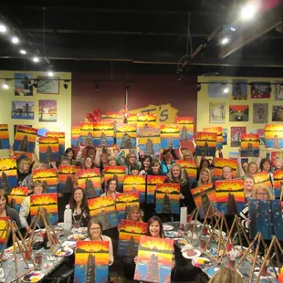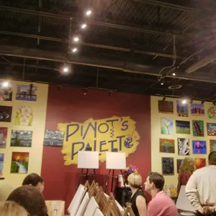 Had a fun night here with my sisters! The painting we chose was difficult, to give our instructor some credit...but I will say her painting did not look like picture, and ours were laughable. Just don't set your expectations for the finished product too high and you'll have fun here. The drink service is really nice and my margarita was yummy and a good value.