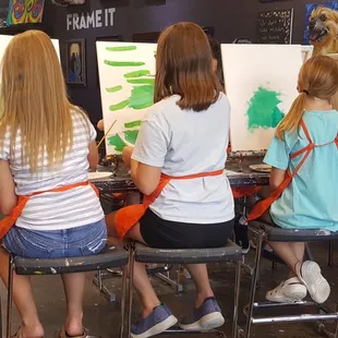 Took my daughter and her friends for her birthday. This was a kid friendly class and there were kids and adults alike painting. The girls were able to do 98% of the painting without any assistance. Which freed me up to kick back with a glass of wine! All the girls had a blast. This is the 2nd kids class my daughter has done and loved it both times. I personally have been here and their other locations several times and it's one of my fave things to do for a girls night. I will definitely be back!