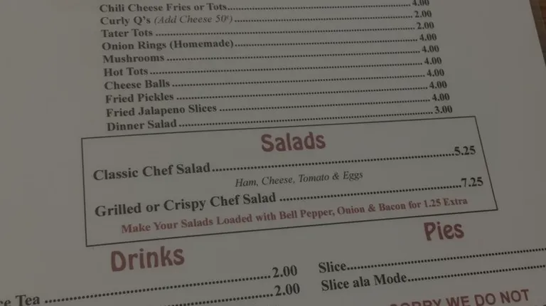 The food here is blah!!! Nothing special or out of the ordinary about it. Just another greasy spoon that gets everything they serve out of the freezer section at Walmart. I don't think anything is made from scratch. It is a place where locals go, probably because food choices are so limited here. Stay home and eat. The food will be better and it will have some flavor...