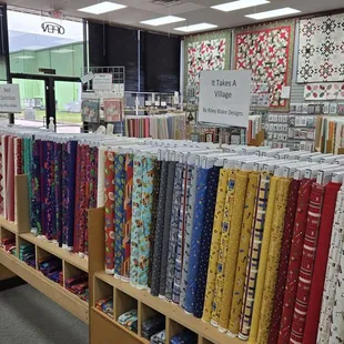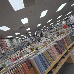 Huge selection of fabrics and patterns. Staff friendly and helpful. Machine repairman can work on all machines - make an appointment for a Tuesday (he's only in-shop Tuesday) and have your machine back in a few hours...NOT WEEKS!