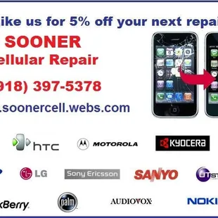 My wife and I flew in to visit her parents and attending a family reunion in Bartlesville.As I approached our rental car, my phone rang. I had full hands, walking briskly, and I dropped my phone. CRASH!!! First time is a charm! Shattered! Looked up iPhone repair. I didn't think there would be service for iPhone. Found Sooner! He was open on Saturday! Holiday Weekend! Removed and Replaced my glass flawlessly within 30 min while politely chatting with me and other customers. I was nervous! It worked perfectly. Thanks! The charge was VERY reasonable and the service Awesome!