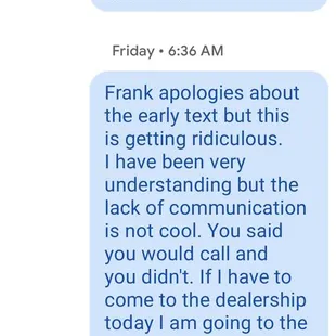 AVOID THIS DEALERSHIP LIKE THE PLAGUE!!!Worst experience at a dealership I have ever had. Service department is a giant mess that they mask with one kind voice. Shadee sales manager is nice but has yet to replace or fix any of the existing issues I have on my truck from date of purchase. I've owned the truck 6 weeks and have maybe driven it two. They have zero interest in making this purchase right or fixing my truck to the standard they sold me at.